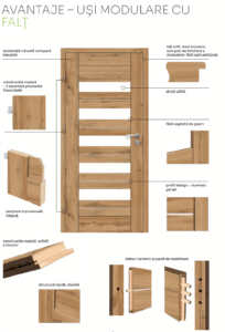 Sistem falțuit: Asigură o mai bună fixare a ușii pe toc, crescând etanșeitatea acestuia. Îmbunătățește proprietățile acustice și izolatoare ale ușii, îmbunătățind confortul.