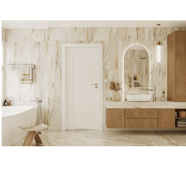 Ușa de interior Tago, în nuanțele alb mat sau cașmir, reprezintă o alegere elegantă și atemporală pentru cei care apreciază liniile curate și designul minimalist, adaptabil oricărui stil de amenajare.